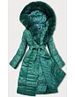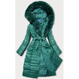Dámska bunda s kožušinovým golierom zelená (ag6-28)