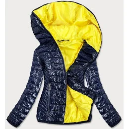 Tmavo modrá dámska bunda s kontrastnou podšívkou (B9546)