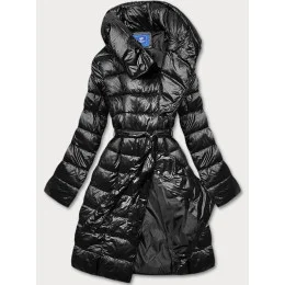 Dámska bunda so skladaným golierom čierna (ag1-j9061b)