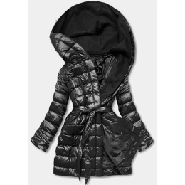 Prešívaná bunda s dvojitou kapucňou čierna (L22-9862-1)