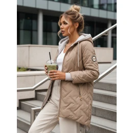Dámska prechodná prešívaná bunda s predĺženým strihom béžová TY5612