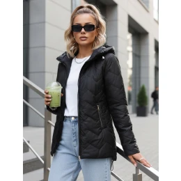 Dámska prechodná prešívaná bunda s kapucňou čierna FashionStreet TY5611