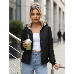Dámska prechodná prešívaná bunda s kapucňou čierna FashionStreet TY5618