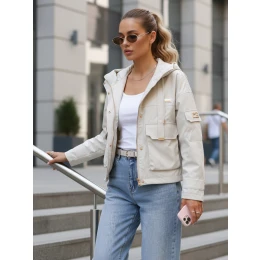 Dámska prechodná bunda s kapucňou a vreckami béžová FashionStreet TY5634