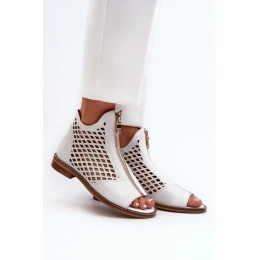 Zazoo 977/L Skórzane Ażurowe Sandały Na Zamek Białe