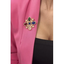 Dámska brošňa v tvare kvety je krásny a univerzálny doplnok, ktorý je už po stáročia spájaný so ženskosťou a jemnosťou. Kvetinové motívy boli v móde vždy obľúbené a kvetinové brošne dodajú každému oblečeniu štýl a eleganciu. Brošňa v tvare kvetiny je možné použiť na ozdobenie jednoduchých blúzok, svetrov alebo šiat, ale aj ako doplnok elegantného šatníka, napríklad večerných šiat alebo sák. Je to klasický doplnok, ktorý nikdy nevyjde z módy a vždy dodá šarm každému oblečeniu. Brošňa sa zapína na spínací špendlík, ktorý možno ľahko pripevniť na akýkoľvek odev alebo doplnok.