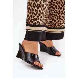 Lakierowane Klapki Damskie Na Koturnie Czarne Nelithin