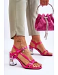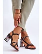 Te eleganckie sandały zostały wykonane z wysokiej jakości eko skóry. Model ten posiada zapinanie na regulowany pasek ze sprzączką z wiszącą ozdobą. Sandałki z paseczkami są niezwykle przewiewne i wygodne. Miękka wkładka z naturalnej skóry zapewni komfortowe użytkowanie. Sandałki osadzono na obcasie w postaci słupka z mieniącymi się kamieniami. Przy wyborze rozmiaru prosimy sugerować się tabelą rozmiarów.
