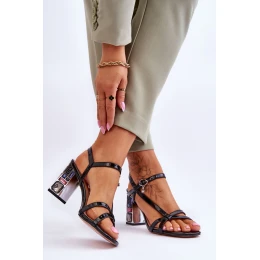 Lakierowane Sandałki Na Ozdobnym Słupku D&A CR-232 Czarne