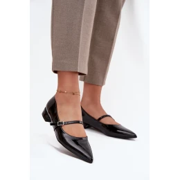 Lakované baleríny na podpatku s páskem Černé model 21709663 - Boto