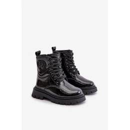 Lakované boty dívčí zateplené kožešinou na zip černé model 21672490 - Boto