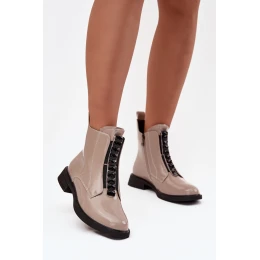 Dámské kotníkové boty vyrobené z přírodní lakované kůže jsou vhodné pro ženy, které ocení eleganci a moderní styl. Lesklý povrch materiálu jim dodává výjimečný charakter, čímž se boty stanou výrazným prvkem každého outfitu. Model je na zip, což usnadňuje obouvání a svlékání. Zaoblené špičky zdůrazňují klasickou linii boty a ozdobné detaily vpředu dodávají celku jemnou originalitu. Tyto boty jsou vhodné jak na denní nošení, tak na zvláštní příležitosti, ideálně doplňují jak casual, tak elegantní outfity. Při výběru velikosti se řiďte tabulkou velikostí. Při výběru velikosti se řiďte tabulkou velikostí.