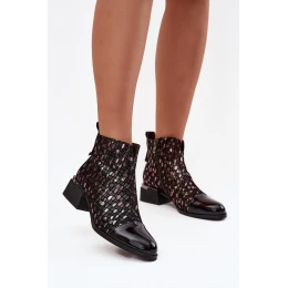 Elegantní dámské kotníkové boty vyrobené ze směsi lakované přírodní kůže a semiše jsou výjimečnou volbou pro ženy, které si cení originálního stylu a vysoké kvality. Kombinace dvou druhů materiálů dodává výrazný charakter a lesklý vzor na svršku přitahuje pozornost a zdůrazňuje jejich eleganci. Model je osazen na stabilním podpatku ve tvaru kostky, který jemně zvedá siluetu a zároveň zajišťuje pohodlí po celý den. Vnitřek je vyhříván obuvníkem, což zaručuje tepelný komfort v chladnějších dnech, a proto jsou tyto boty skvělé na podzim a zimu. Tento pár obuvi skvěle doplní jak každodenní stylizace s džíny, tak i sofistikovanější outfity s sukní nebo šaty, čímž jim dodá eleganci. Při výběru velikosti prosím dle tabulky velikostí. Při výběru velikosti se řiďte tabulkou velikostí.