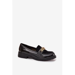 Lakované dámske mokasíny so zlatým zdobením S.Barski - čierne