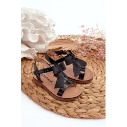 Lakované dětské sandálky s mašlí na suchý zip černé model 21662869 - Boto