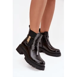 Lakované kotníkové boty s se zlatým detailem černé model 21707431 - Boto