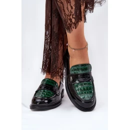 Lakierowane Skórzane Mokasyny Damskie Vinceza 91125 Zielono-Czarne