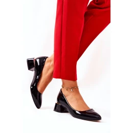 Skórzane Lakierowane Czółenka Lewski 3118 Czarne