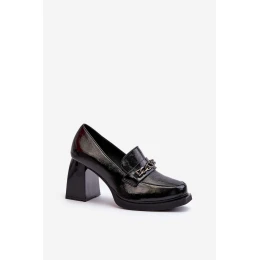 Lakované lodičky na podpatku černé model 21655378 - VINCEZA