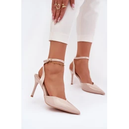 Dámské lodičky vyrobené z lakované eko kůže. Lesklé provedení vypadá na noze krásně a špičaté nosy dodávají celku štíhlost. Model má nastavitelný pásek s přezkou, díky čemuž lze snadno přizpůsobit obuv noze. Ženské, klasické a nadčasové — ideální na večerní stylizace. Při výběru velikosti se řiďte tabulkou velikostí. Při výběru velikosti se řiďte tabulkou velikostí.: