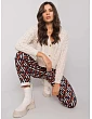 Nohavice z čiernej a zelenej vzorovanej látky .
