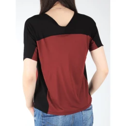 Dámské tričko v černo-vínové barvě. Jednoduchý, klasický střih. Krátký rukáv.