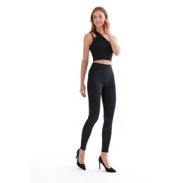 Dámske čierne krycie legíny s vysokým sedom a strihom.