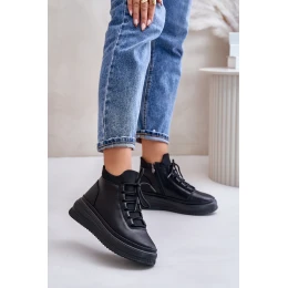 Lehké Kožené Sportovní Boty Na Platformě model 21673220 Černé - Artiker