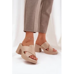 Lehké Pantofle Na Podpatku Z Eko Kůže Světle Béžové model 21684550 - Boto