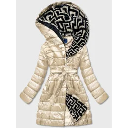 Dámska ľahká zimná bunda so zateplenou kapucňou ecru (omdl-019)