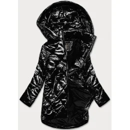 Lesklá čierna prešívaná dámska bunda (LD7259BIG)