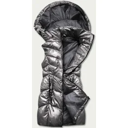 Lesklá šedá vesta s kapucňou (B8025-70)