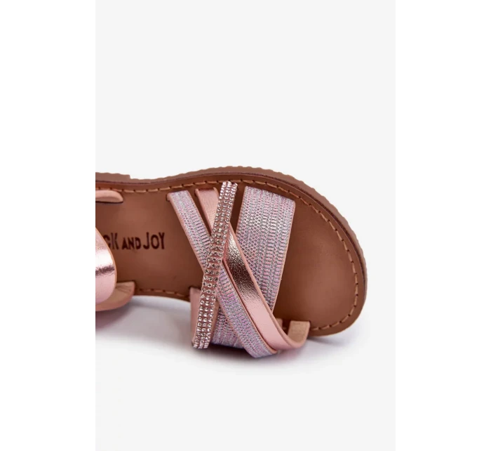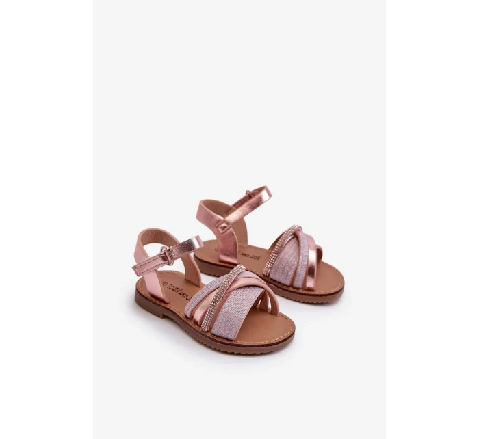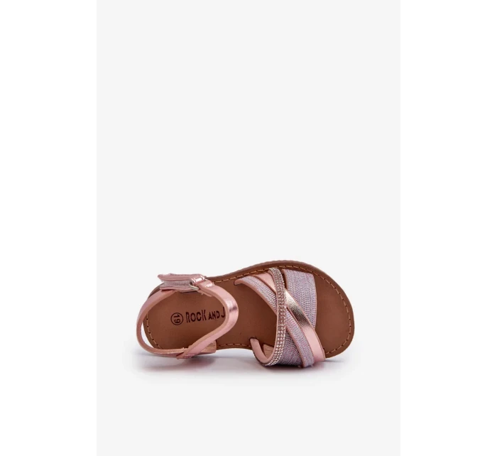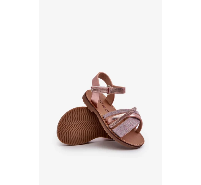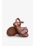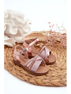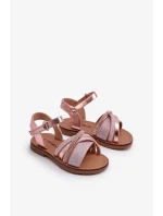 Detské lesklé sandále so suchým zipsom, ružové Delphina
