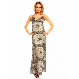 Letné dámske šaty s elegantným potlačou dlhé čierno-ecru - Farebná / S - SWEEWE