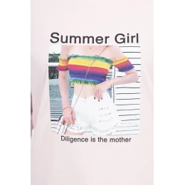 Letná dievčenská blúzka s potlačou púdrovo ružová