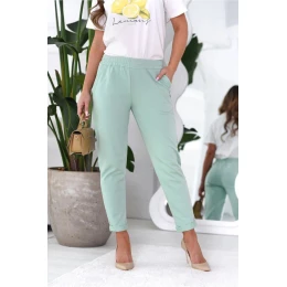 Tieto dámske tepláky s dĺžkou 7/8 sú kombináciou pohodlia, štýlu a funkčnosti. Sú vyrobené z kvalitných bavlnených teplákov od poľského výrobcu a zaručujú dokonalé prispôsobenie a pohodlie počas celého dňa. Model má široký elastický pás a zrolované manžety, vďaka ktorým sa dokonale prispôsobí postave. Dve šikmé vrecká na prednej strane im dodávajú praktickosť a športový charakter, zatiaľ čo hladká zadná strana im dodáva elegantný vzhľad. Sú ideálnou voľbou pre športové outfity aj ležérne každodenné štylizácie.