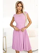 Lila - to sú plisované dámske šaty s krátkymi rukávmi a opaskom.