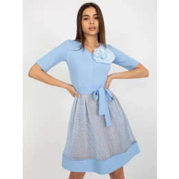 Svetlomodré koktailové šaty s opaskom .