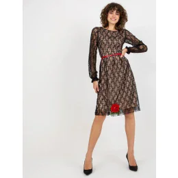 Čierne čipkované kokteilové šaty s opaskom.