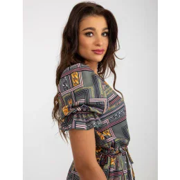 Khaki midi šaty s potlačou a krátkymi rukávmi.