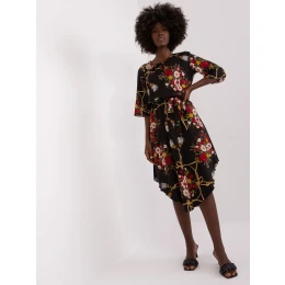 Čierne midi šaty s potlačou a 3/4 rukávmi.