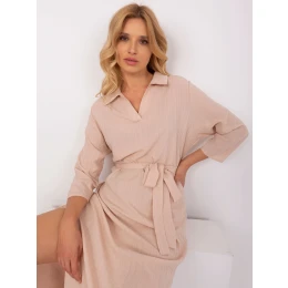 Béžové jednoduché každodenné šaty s opaskom.