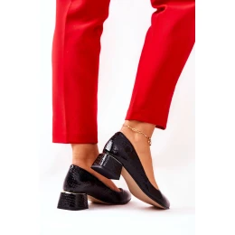 Skórzane Wężowe Czółenka Lewski 3118 Czarne
