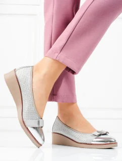 Dámské lodičky na klínku z přírodní kůže světle šedé model 21659787 - S.Barski
