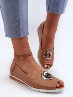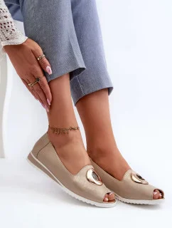 Dámske lodičky s ozdobou z ekokože, tmavobéžové Biolita