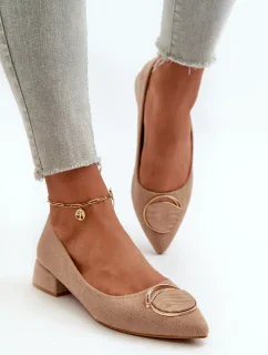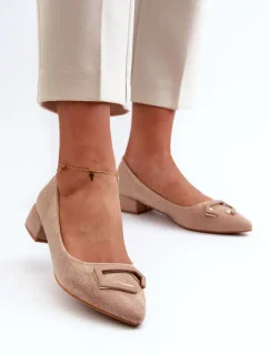 Lodičky na nízkom podpätku so zdobením, Eco Suede S.Barski Beige