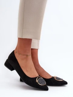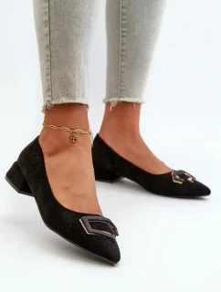 Lodičky na nízkom podpätku so zdobením, Eco Suede S.Barski Black