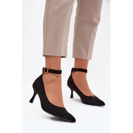 Dámske lodičky na podpätku z mäkkého materiálu z ekokože. Model očarí klasickým strihom so špicatou špičkou, ktorý opticky zjemňuje nohy a dodáva postave ľahkosť. Topánky sa zapínajú okolo členka na nastaviteľný remienok so sponou, ktorý krásne zvýrazní nohu a zároveň poskytuje stabilitu a pohodlie pri nosení. Tieto lodičky sa skvele hodia na večerné stylingy, ako aj na elegantné outfity na každý deň.