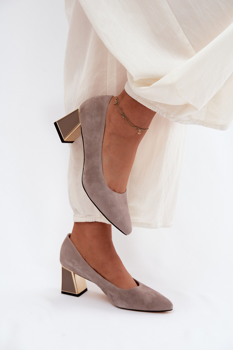 Lodičky z přírodního semiše na podpatku Vinceza Béžové