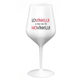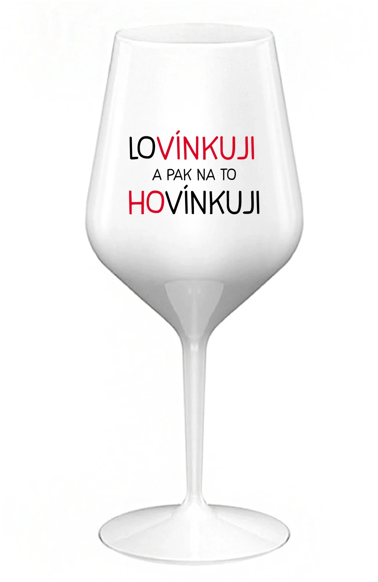 LOVÍNKUJI A PAK NA TO HOVÍNKUJI - bílá nerozbitná sklenice na víno 470 ml